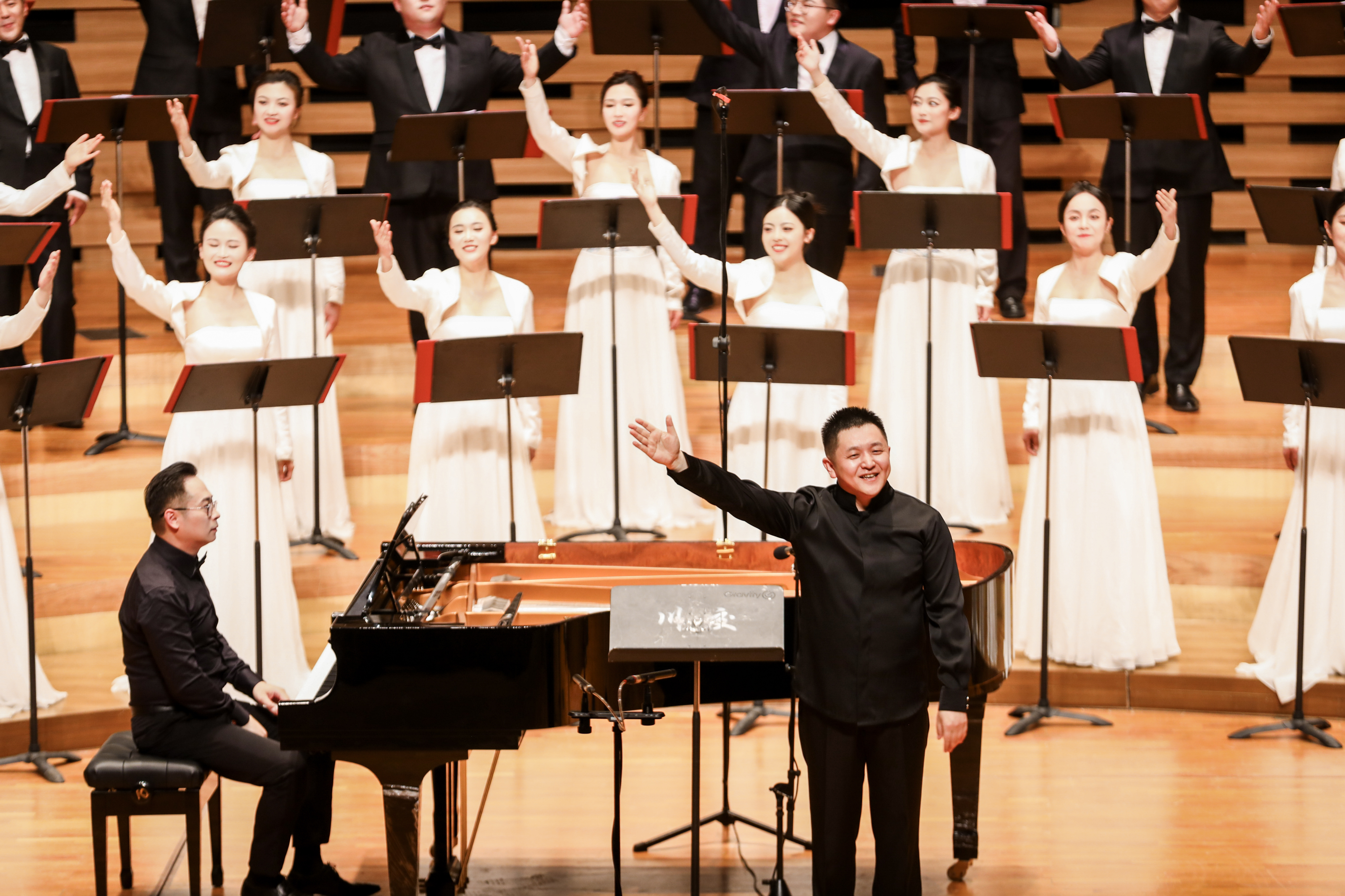 本场上演由中国齐唱界特出的女指示家吴灵芬素养联袂后生指示家孙毅共同执棒完成。吴灵芬是中国齐唱界少有的既站讲台又站舞台,并掌持了大批古今中外不同作风齐唱经典作品的艺术家,她对鼓吹中国齐唱音乐的发展作出了广宽孝顺。